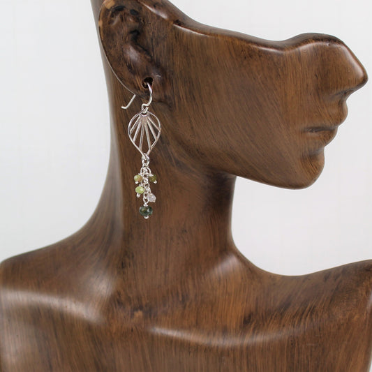 Sterling Leaf and Fancy Agate Earrings