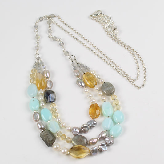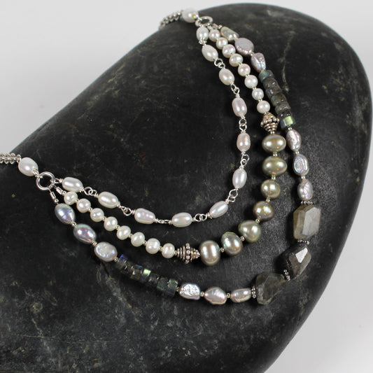 Pearl and Labradorite Multi-Strand Necklace