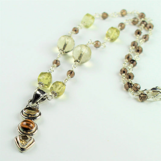 Smoky Quartz and Citrine Wire Wrapped Necklace