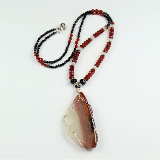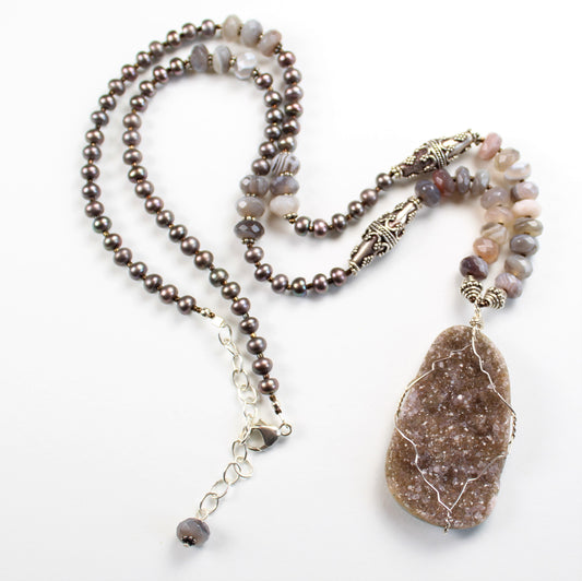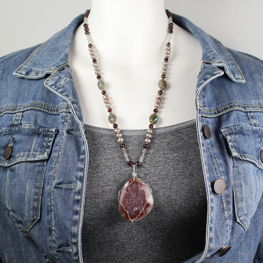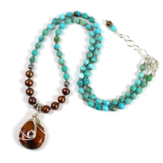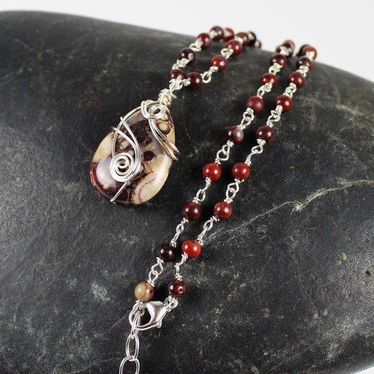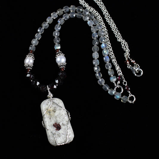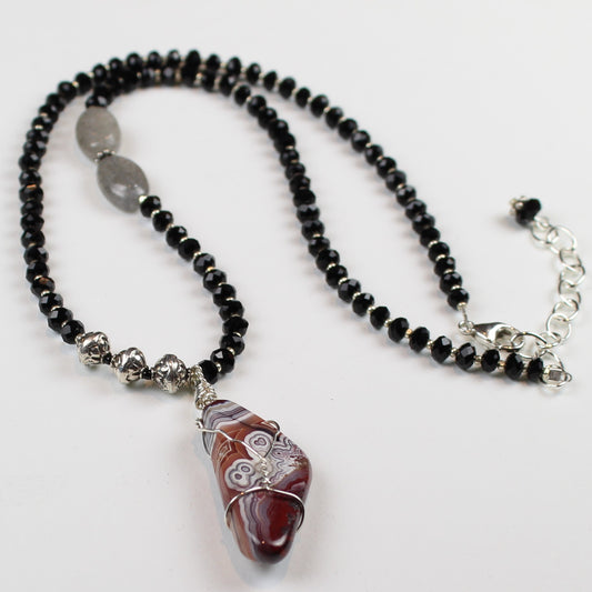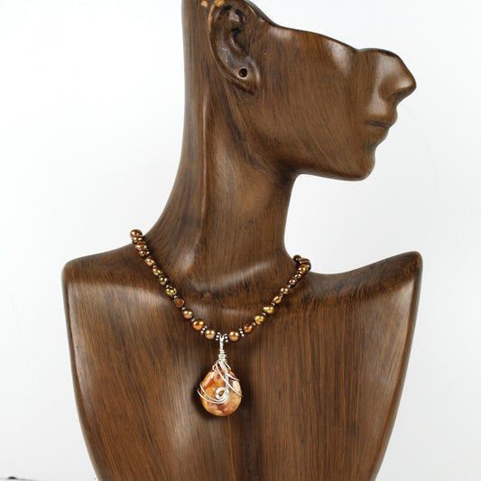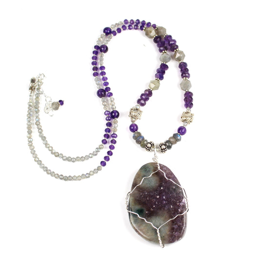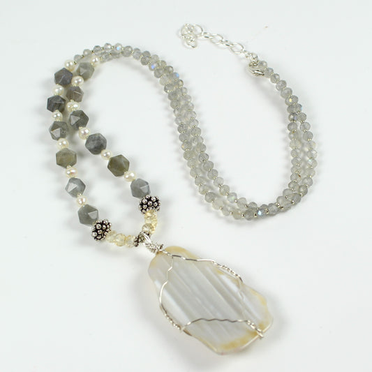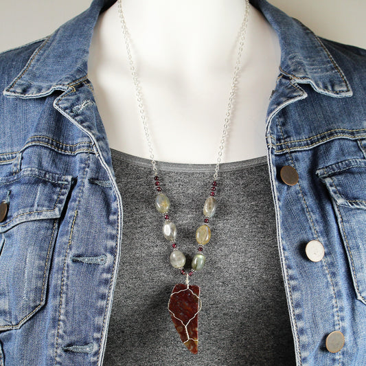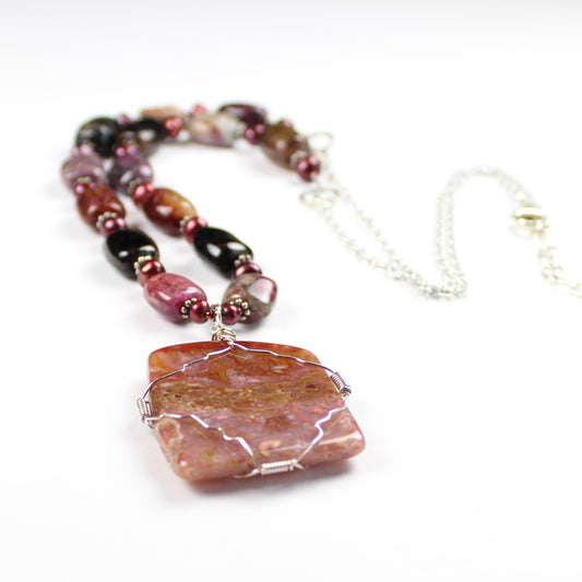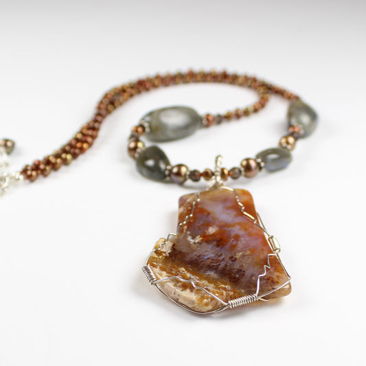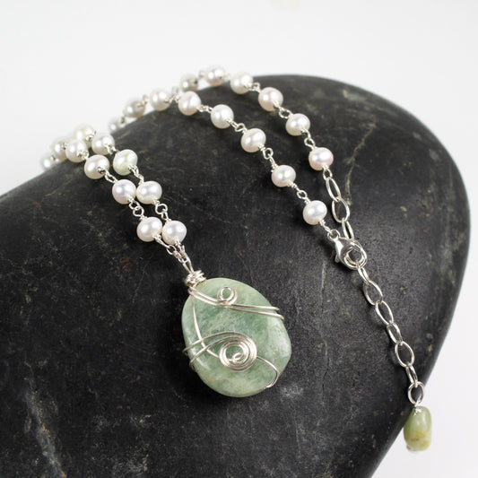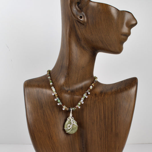 These one-of-a-kind necklaces feature polished natural gemstone wrapped in sterling silver wire.