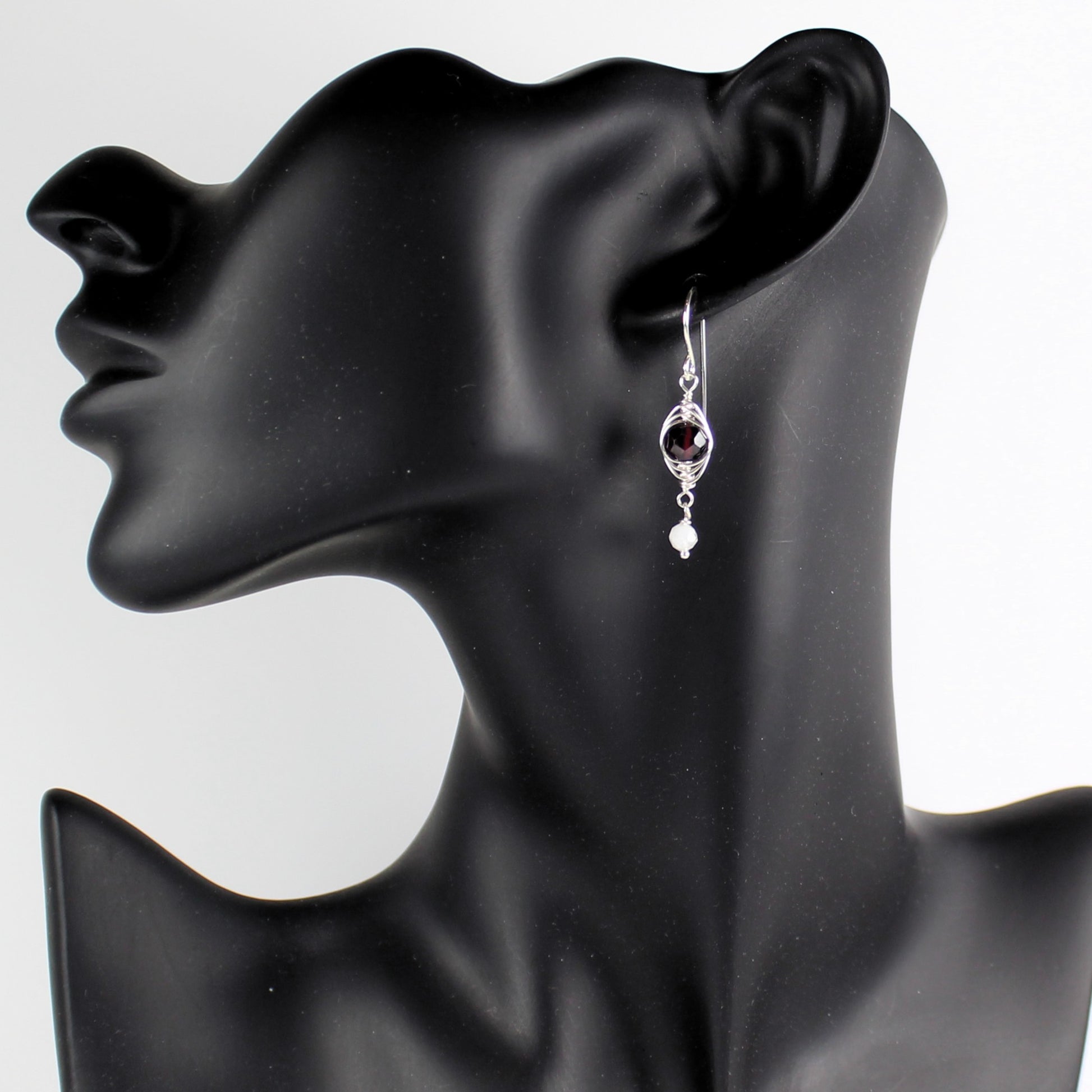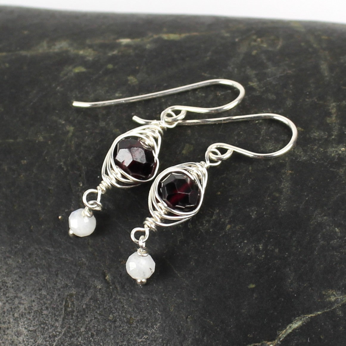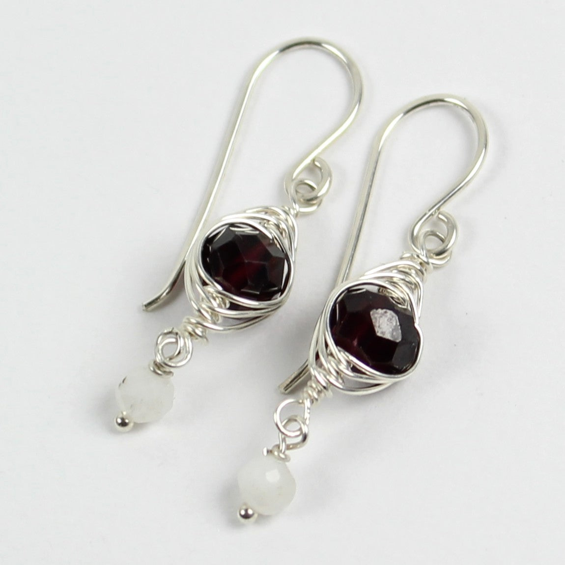 Sterling Silver wire creates a Herringbone design around Faceted Garnets.