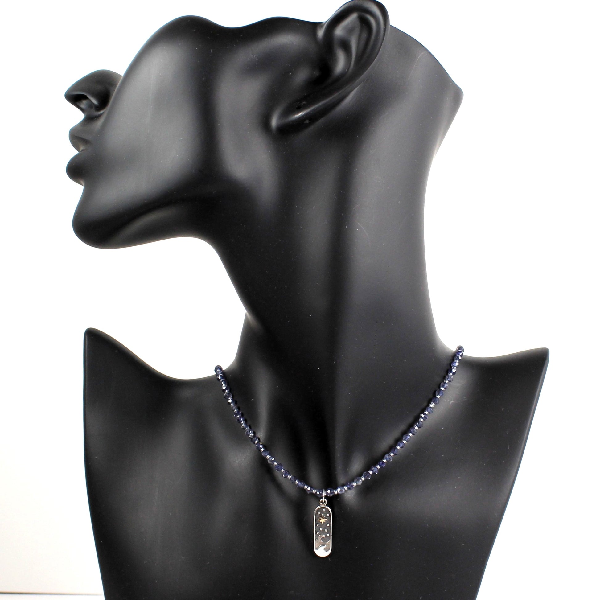 The North Star shines over the waves of this 2-toned sterling pendant on a delicate Iolite and seed bead chain.