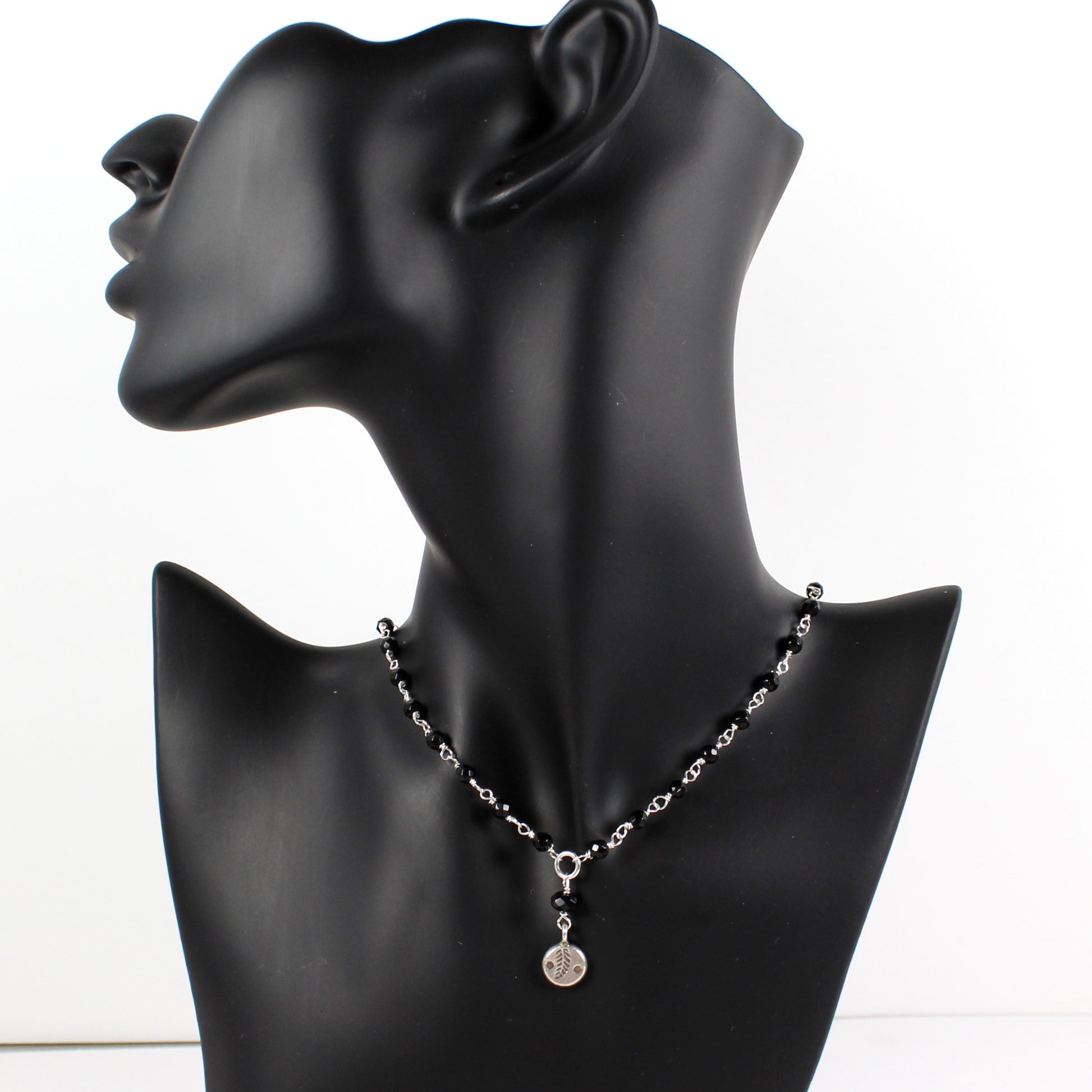 Individually wrapped gently faceted black onyx beads create a delicate chain.